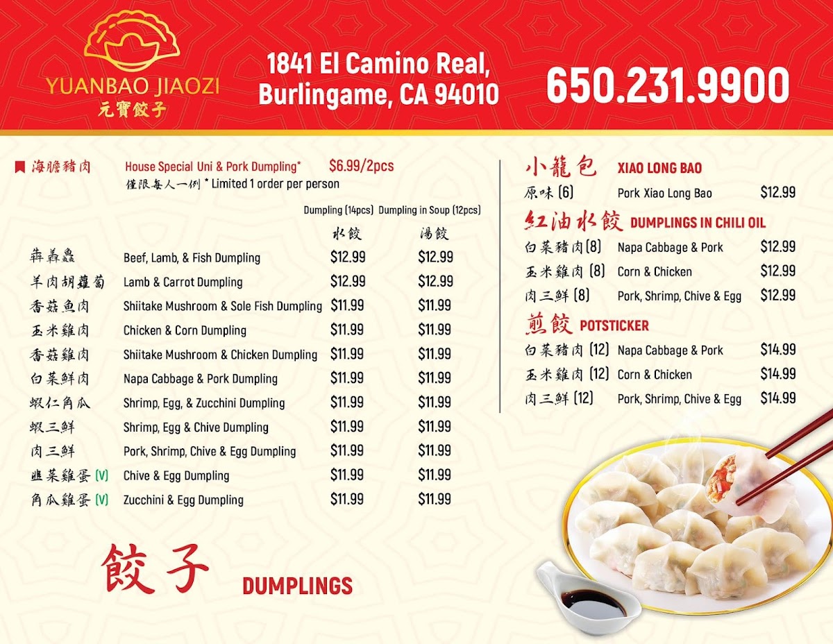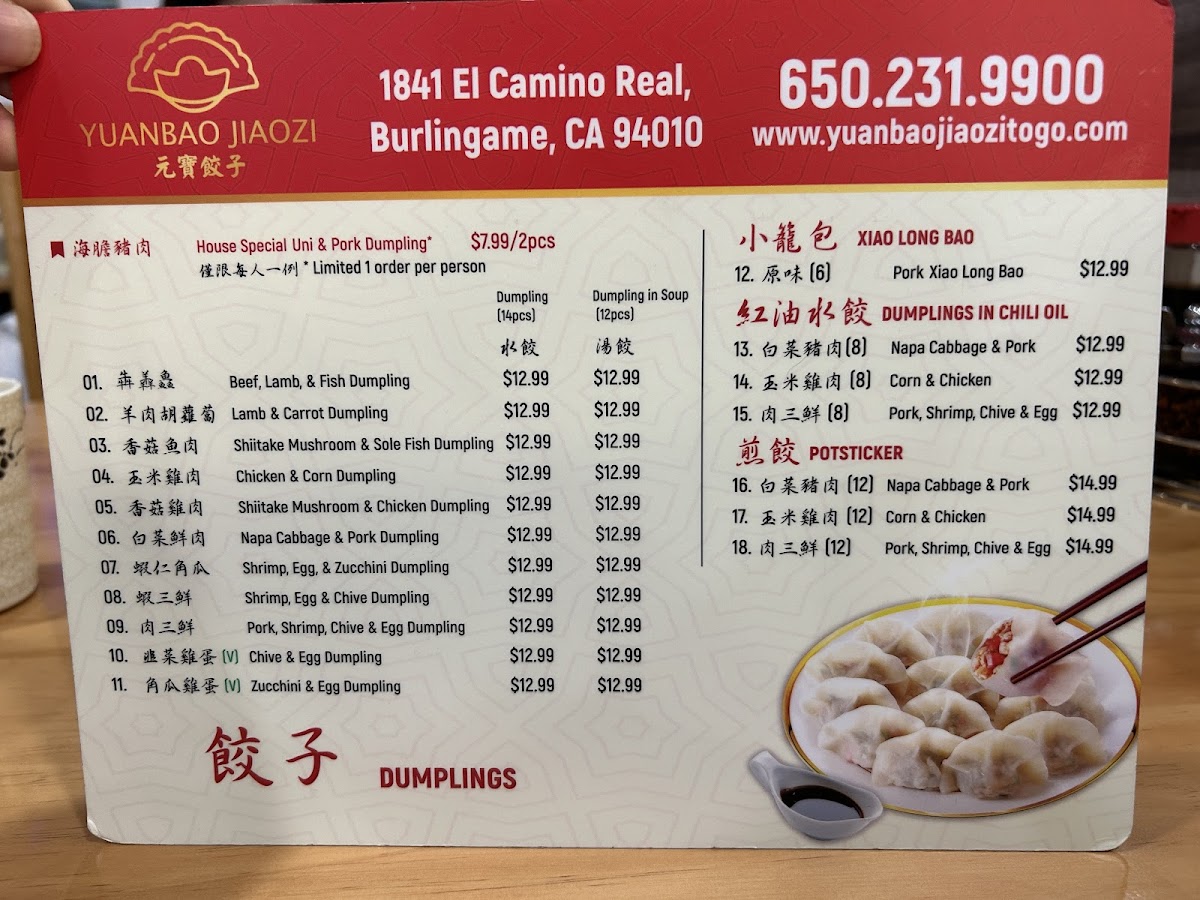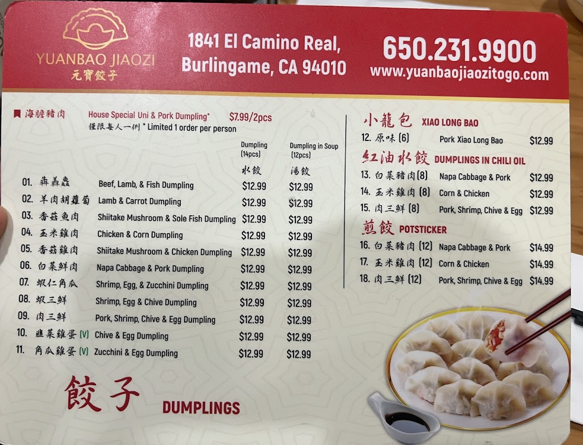 Yuanbao Jiaozi Menu