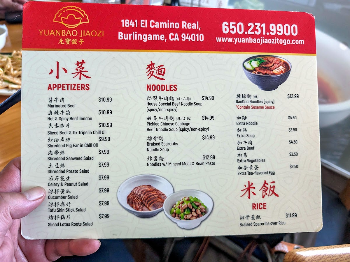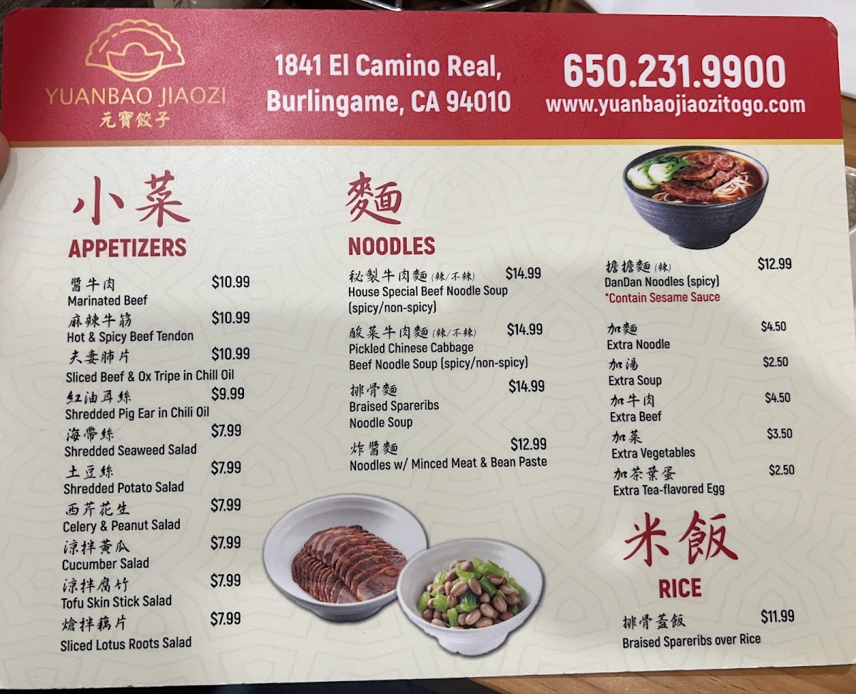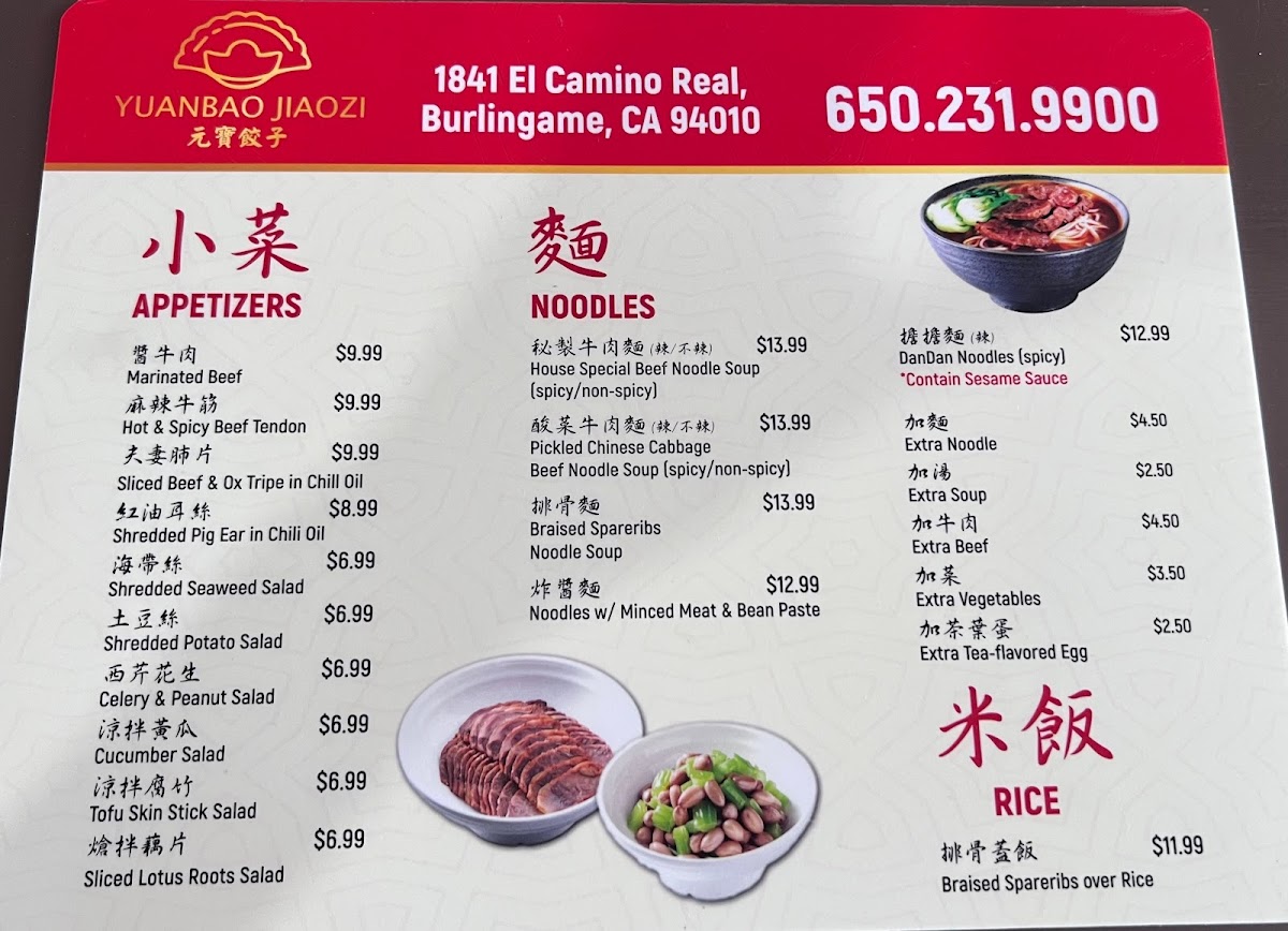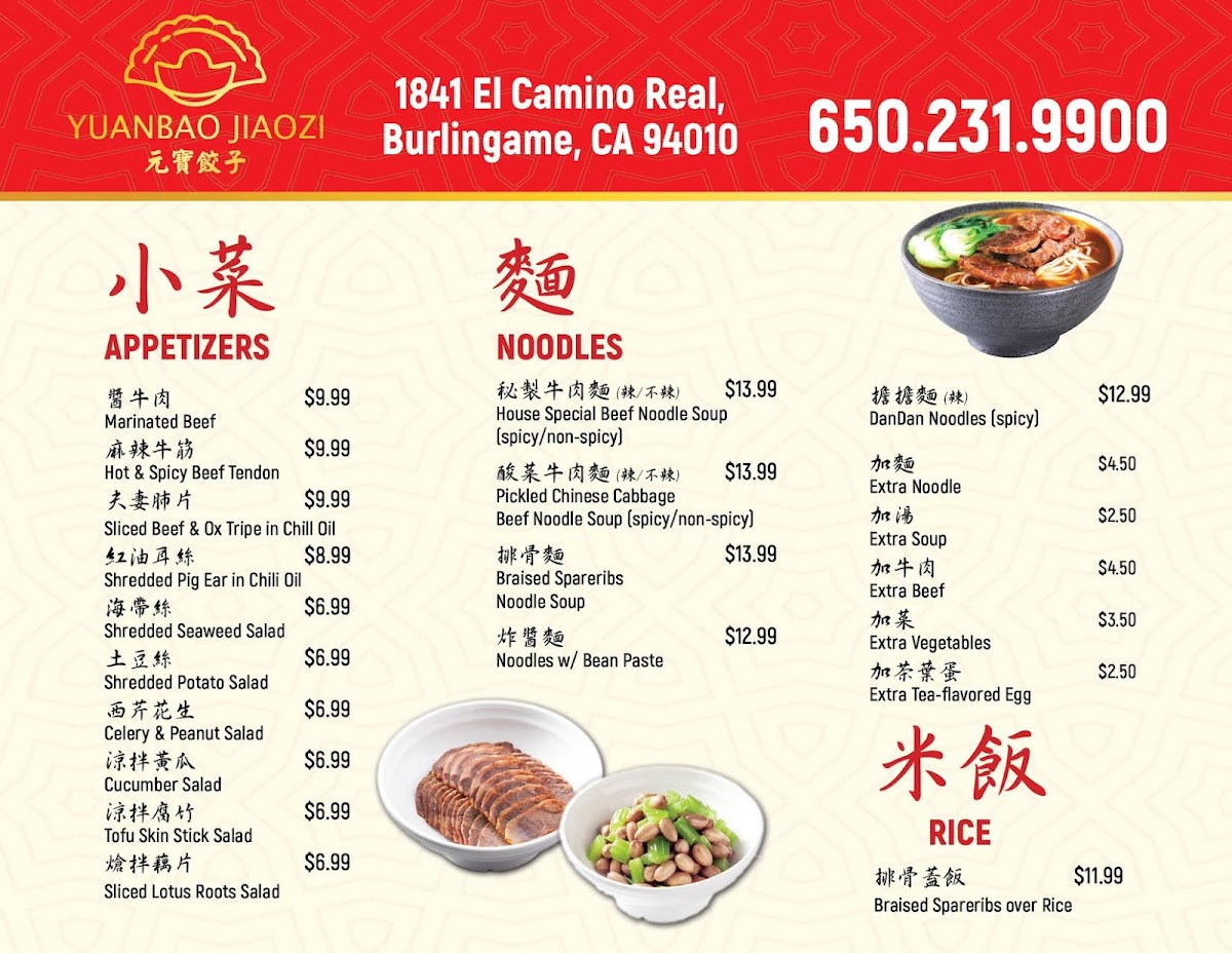 Yuanbao Jiaozi Menu